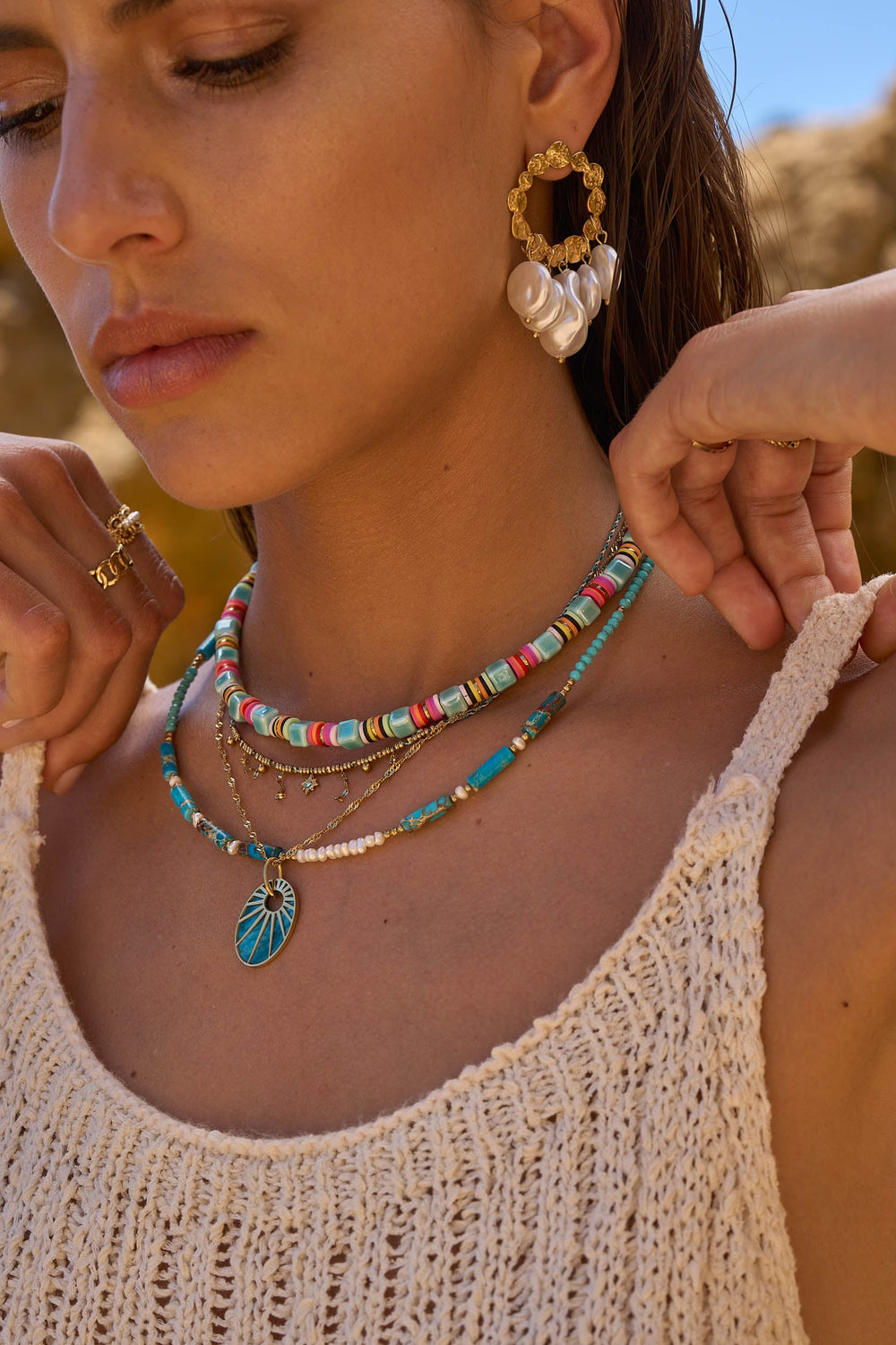 Material: Edelstahl, vergoldet, nickelfrei, Keramikperlen, Heishiperlen