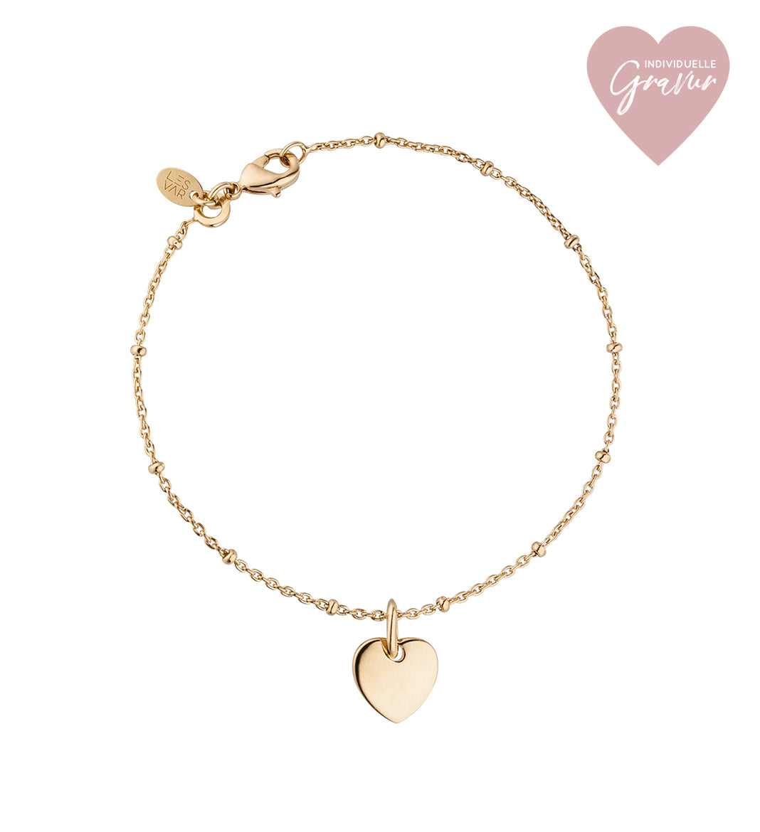 Süßes Armband passend für den angesagten Layering Look. Kombiniere es mit anderen Armbändern und Du hast Deinen eigenen angesagten Minimal Style! Den Anhänger kannst Du auf Wunsch gravieren lassen.