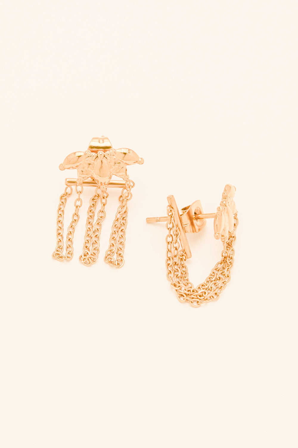 Hübsche Ohrringe verziert mit hängenden, feinen Ketten.