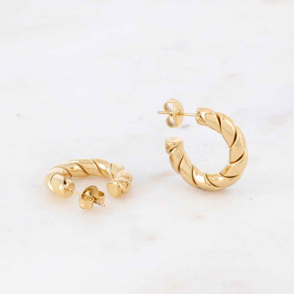 Gedrehte Kreolen aus Edelstahl in schönem Gold.