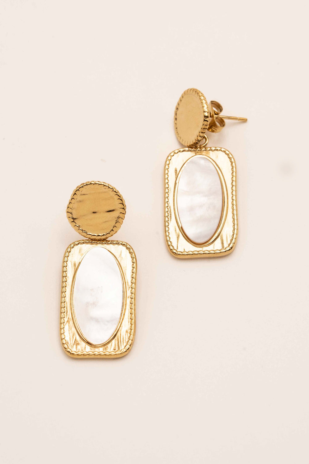 Wunderschöne Ohrhänger in schimmerndem Gold und zarten Perlmutt.