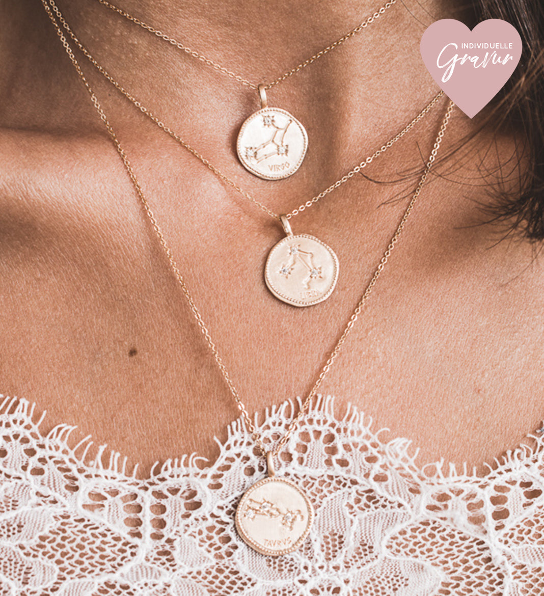 Strahle den ganzen Tag mit deinem eigenen Sternbild an deinem Hals! Unsere zarte Kette mit schimmerndem Anhänger und funkelnden Zirkonia Steinen verleiht jedem Outfit einen Hauch von Magie. Wähle dein Sternbild und fühle dich wie ein echter Star (im wahrsten Sinne des Wortes)!