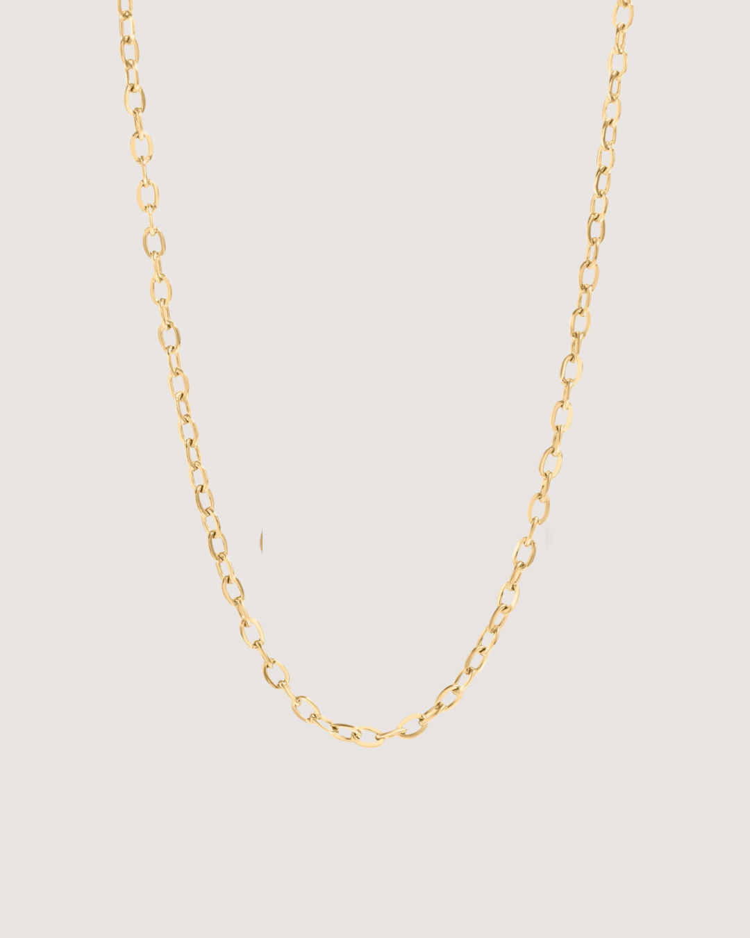 Diese angesagte Rope Chain in edlem Gold-Look verleiht jedem Outfit das gewisse Extra. Das gedrehte Design sorgt für auffälligen Glanz und liegt voll im Trend – ob als Solo-Piece oder im Layering-Look. Ein Must-have für alle, die cleanen Schmuck mit Charakter lieben.